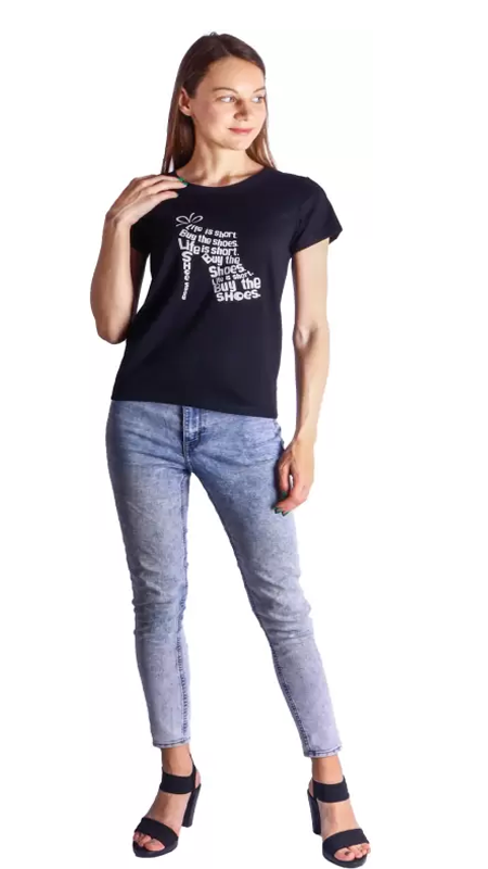 Be the first to review “Printed Round Neck Women And Girls Black T-Shirt For Regular Fit Women Typography Round Neck Cotton Blend Black T-Shirt” Cancel reply